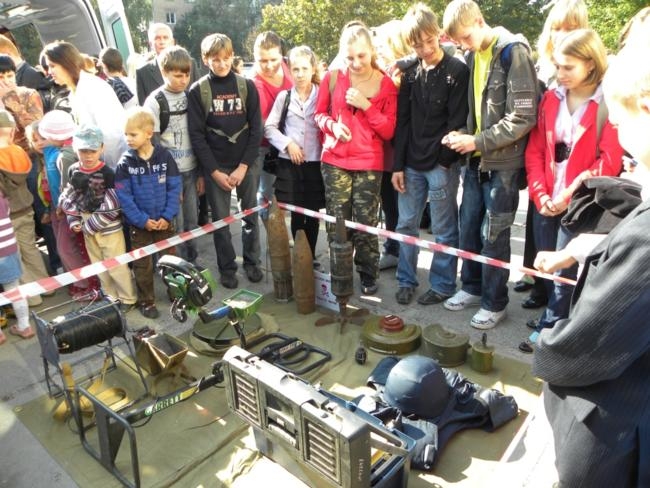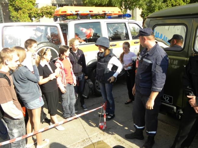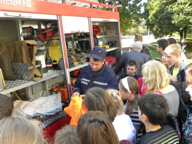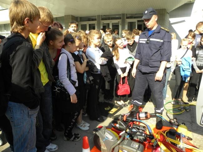 Розпочалось свято з виставки пожежно-рятувальної техніки, що вишикувалась на фасаді Палацу дітей та юнацтва. З привітальним словом до дітей звернувся помічник начальника Головного управління МНС Андрій Хожаїнов. Він зазначив, що професія рятувальника важка і небезпечна, проте має високий авторитет в суспільстві, здобутий конкретними й вагомими справами. По закінченню виступу, фахівці МНС ознайомили дітей із основними вимогами безпеки, продемонстрували засоби захисту рятувальників, прилади виявлення вибухівки та зараженої території, наочно показали можливості аварійно-рятувального обладнання і техніки. Про методи надання першої допомоги при травмах розповіли фахівці медичної служби Головного управління МНС.