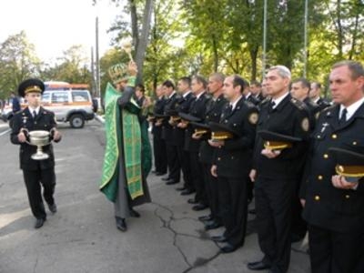 Розпочались урочистості молебеном на честь тих, хто присвятив своє життя боротьбі з вогнем і стихіями. Настоятель Свято-Михайлівського храму отець Іван окропив святою водою всіх присутніх гостей, особовий склад і техніку оперативно-рятувальної служби.