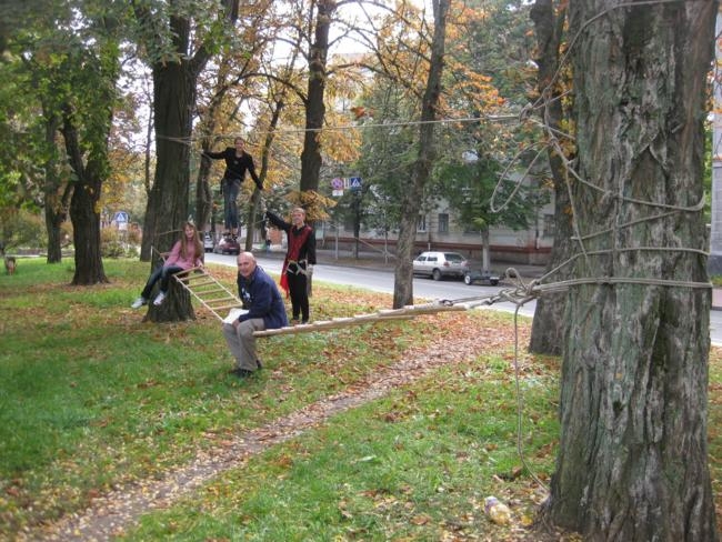 Обратил внимание на зеленую часть Аллеи Героев. Ого! Настоящий батут, где уже вовсю прыгала детвора, натянутые между деревьями веревки для лазания и готовые к «бою» прыгающие ходули (джамперы). Все это физкульт-привет от черниговских экстремалов и их главной движущей силы – Анатолия Антишко. Ребята – молодцы, без дела не сидят. Все, что можно в городе уже освоили. И «Яловщину», и пляжи, и пешеходный мост. Наконец, добрались до центра.