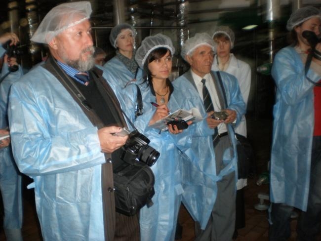 После устроенной для журналистов экскурсии по производственным цехам, подробного объяснения этапов изготовления молочной продукции и насыщенной, широкого ассортимента дегустации состоялась пресс-конференция, где Валентин Галич, председатель правления ОАО «Черниговский молокозавод», рассказывал «обо всем понемногу» касательно предприятия.