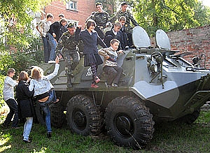 До того ж, виявилося, що патрульний міліціонер — не лише захисник, а ще й помічник. У кожній патрульній машині обов’язково є аптечка і навіть все приладдя, щоб надати першу допомогу на воді як влітку, так і зимою. Але хлопців, безперечно, найбільше зацікавила можливість посидіти у справжньому бронетранспортері та потримати в руках бойову зброю. Дівчата ж із благоговінням пестили «милого і слухняного песика» Вука, який, до речі, відзначився відмінною службою в Косово.