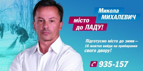 Николай Михалевич и общественная «Місто до ладу» приглашают Вас принять участие в общегородской акции по подготовке города к зиме, которая пройдет 16 октября в Вашем дворе. Подготовим свои дома и дворы к зиме вместе, по-соседски! Сделаем первый шаг к наведению порядка в городе!