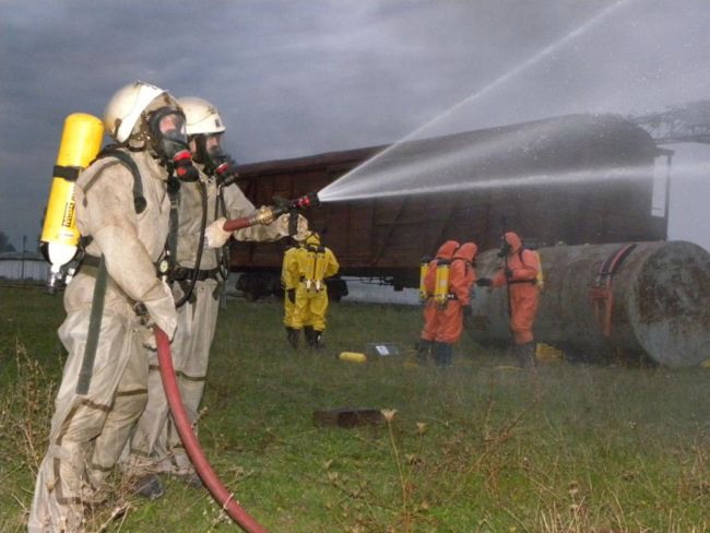 О 18:30 28-го вересня до оперативно-координаційного центру Головного управління МНС в області надійшов сигнал про хімічну аварію - під час маневрування по залізничним коліям перекинулася цистерна з аміаком загальною місткістю 30 тонн. Через її розгерметизацію виникло щільне задимлення із різким запахом, двоє людей постраждало. Крім того, загорівся вантаж на залізничній платформі. Так розпочались спільні навчання Чернігівських підрозділів МНС та 8-го навчального центру Державної спецслужби транспорту.