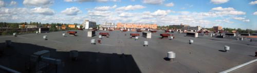 - Когда я пришел в 2003 году, эти крыши были сплошным ситом. Сегодня всё перекрыто. Крыши мы делали до 50 тыс. м2 в год, ведь площадь крыш составляет 40 гектаров! - рассказывает Николай Михалевич. - Только сверху можно увидеть масштабы предприятия и понять, что и где находится! Все это – производство капрона. Слева за деревьями белое здание – в нем расположено производство нитки. Красное здание по центру – это производственный корпус, в котором из гранулята получают саму нить. Слева от него – новый химцех. В этом здании уже произведен демонтаж старого и по согласованному проекту начинается монтаж нового оборудования. Теперь старый химцех (высокое зеленое здание справа) можно закрывать. Сегодня, за счет реконструкции производства, мы смогли сохранить объемы выпускаемой продукции, при этом сократив производственные площади. Если, например, старый химцех был рассчитан на 80 тонн продукции в сутки, то новый – на 160. Корпуса, которые находятся по правую сторону, сегодня фактически свободны...
