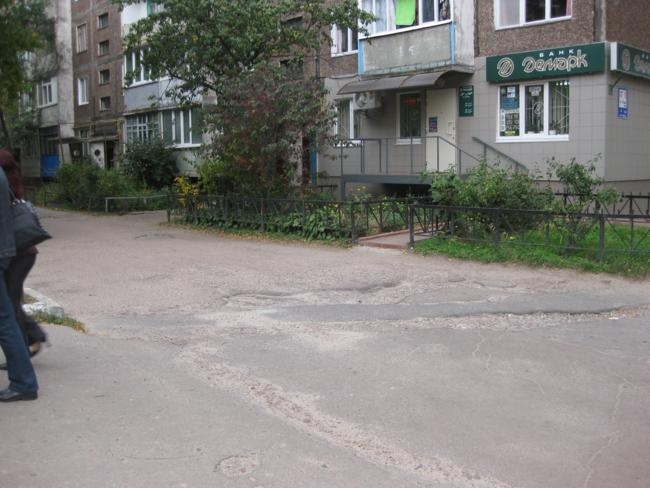 Более чем часовой журналистский рейд по жилым кварталам города дал свои неутешительные результаты. Стоит лишь чуть свернуть с улицы во двор – и сразу же возникает ощущение, что ты попал в совершенно иной мир: в жилых дворах редко какая дорога без выбоин и ям! Хорошо, что ездили мы не среди ночи, а то… В этот раз в наш «черный список» попали придворовые территории домов, расположенных по улицах Доценко, Щорса (Шерстянка), Рокоссовского, Красногвардейской, Партизанской, Северной и проспекте Победы… Как видите, вне зависимости от географии города, картина бесхозяйственности в полной мере характерна для каждого из районов Чернигова. От соседства с той или иной организацией тоже толку мало! Располагая свое хозяйство на территории жилого квартала, многие из предпринимателей не заботятся о достойных подъездных путях. Яркая рекламная вывеска идет в явное противоречие-противовес с раздолбанной дорогой! Какая уж тут забота о клиенте?! Одни лишь слова...