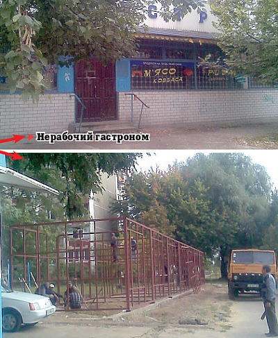 О новых торговых точках: походу - новая торговая точка, она как гриб появилась на зеленом газоне по улице Белова. Возле, а может, вместо Петуха... Фото сделано утром в понедельник 27 сентября. В воскресенье уже стоял этот каркас, а внутри него и рядышком ЕЩЕ росли маленькие деревья. Их уже выкорчевали, так как они мешают. Окаком озеленении города может идти речь, если на этих самых деревьях ставят очередные бутики? А прямо позади этого скелета находится детская площадка. Кто дает добро на все это? Кто закрывает глаза? Кто в очередной раз греет на этом руки? Ведь в этом районе торговых точек хватает! А почти напротив стоит «нерабочий» гастрономчик, который при желании можно реанимировать. Но зачем? Проще и дешевле, наверное, воздвигнуть прямо на деревьях какой-то новый кошмар…..