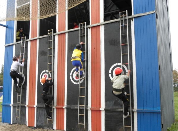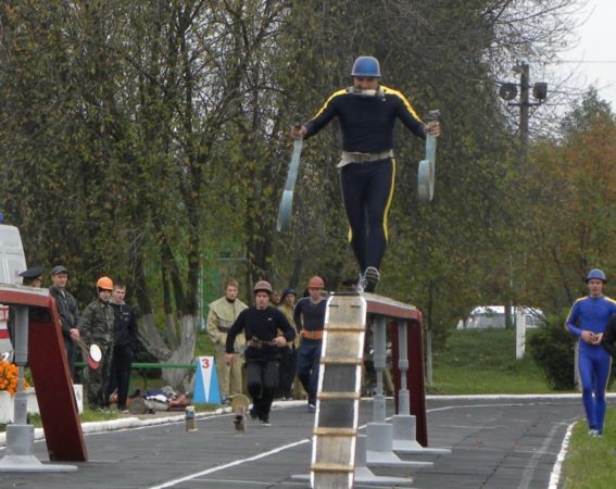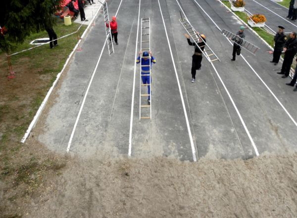 Останній етап - пожежна естафета для декого і став вирішальним. Подолати будиночок, 2-метровий паркан, пробігти по вузькій колоді та вогнегасником загасити палаючу ємність - і все це на високій швидкості за мінімально короткий час.