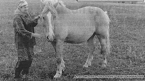 — Когда милиционеры завели Буянчика во двор, — продолжает Алина Моняко, — нашей радости не было предела. Конь очень проголодался и «хватал» все что видел: сено, яблоки, овес, а когда наелся, положил голову Сергею на плечо и закрыл глаза. Когда муж направился к дому — пошел следом. Буянчик ходил за ним по пятам дня три, как собака, а затем немного успокоился. Сейчас я забираю нашего кормильца с пастбища дотемна, чтобы его больше никто не смог украсть, и, если бы была моя воля, разорвала бы воров на куски!