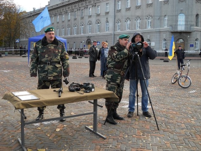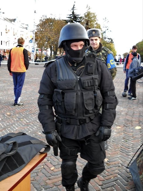 Рядом военнослужащие с образцами современного стрелкового оружия, спецтехники и амуниции. Все под чутким контролем руководства – спортивного, военного и милицейского.
