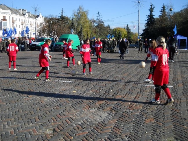 Концертная программа на сцене, соревнования юных туристов, рев носящихся по кругу картингов. Готовящиеся к старту велосипедисты и лыжники на роллерах. Показательный бой боксеров и тренировка будущих чемпионок Мира по футболу симпатичных девчонок из группы подготовки «Легенды».