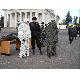 Как последний штрих – солнечное голубое небо и государственные флаги в руках у стоящих в оцеплении, немного замерзших, но понимающих важность момента, парней в синей лицеистской форме. Все атрибуты праздника налицо.