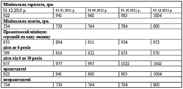Наводимо основні параметри соціальних стандартів, що чекають нас у 2011 році.