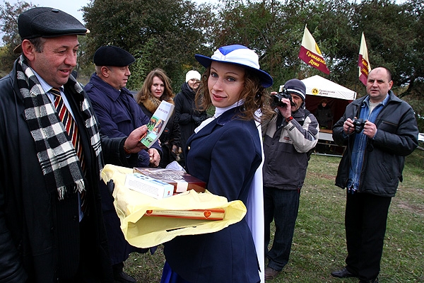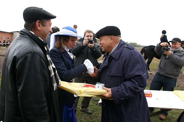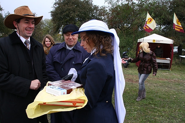 На фуршет по поводу праздника остались самые стойкие – дождь не помеха! «Кузьмич» - так ласково называют Александра Кузьмича Овдия - зрителей потчевал жареным подчеревком, тушеной картошечкой, домашними соленьями…