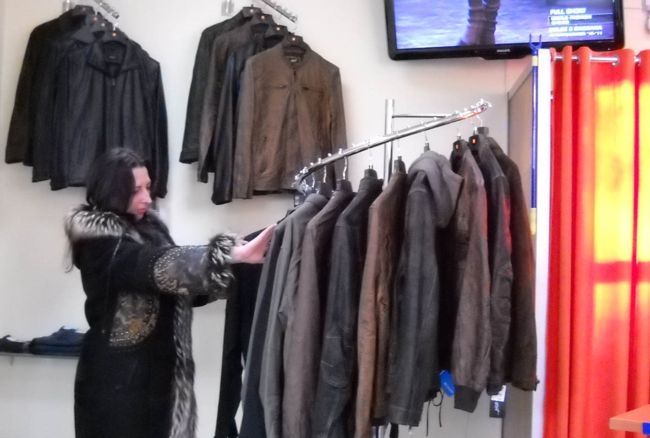 В новом магазине достаточно просторно, много воздуха и света, вещи имеют приятный запах настоящей кожи. Товары аккуратно развешаны на вешалках, к ним удобно подойти и рассмотреть. Есть комфортная примерочная. Если вы пришли в сопровождении друга или подруги, они могут присесть в уютные кресла и посмотреть телевизор, пока вы делаете свой выбор. Все свидетельствует о внимании и уважении к каждому клиенту. Здесь нет большого количества посетителей и суеты, ведь магазин и не рассчитан на широкий круг потребителей.