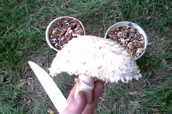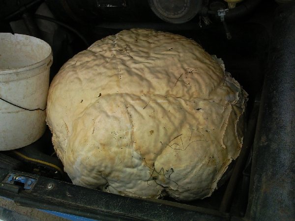У меня один гриб, но какой? Дождевик. Если честно, то нашёл сосед я только сделал фото в багажнике автомобиля, согласитесь гриб весом в 17,5 кг достоин внимания.