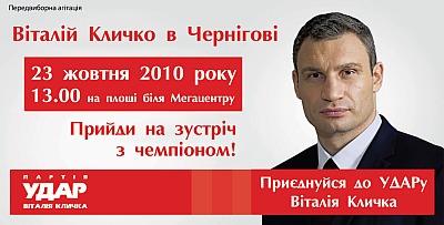 Зважаючи на напружений графік Віталія Кличка у всеукраїнському турі, змінився час прес-конференції. Спілкування Віталія Кличка - лідера партії УДАР – з журналістами та блогерами відбудеться після його зустрічі з чернігівцями біля Мегацентру. Початок прес-конференції – о 14.15.