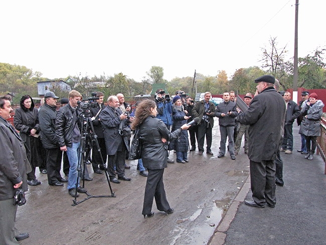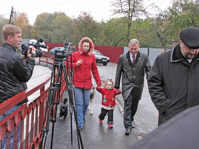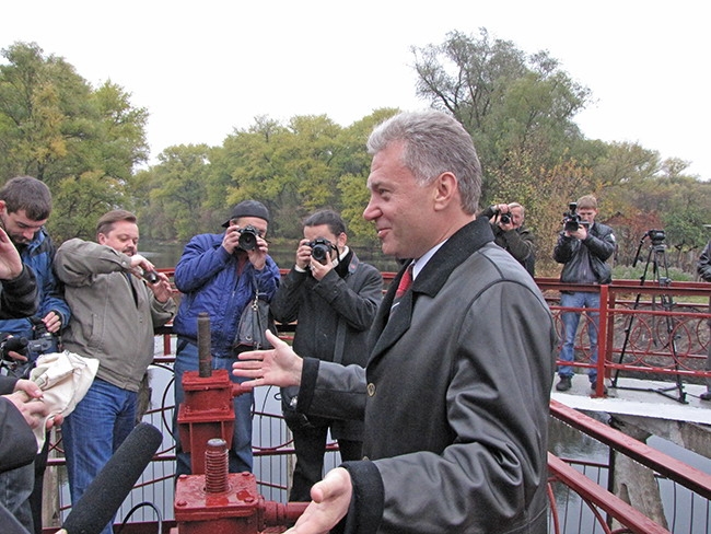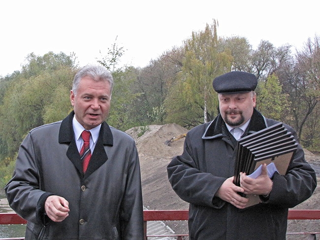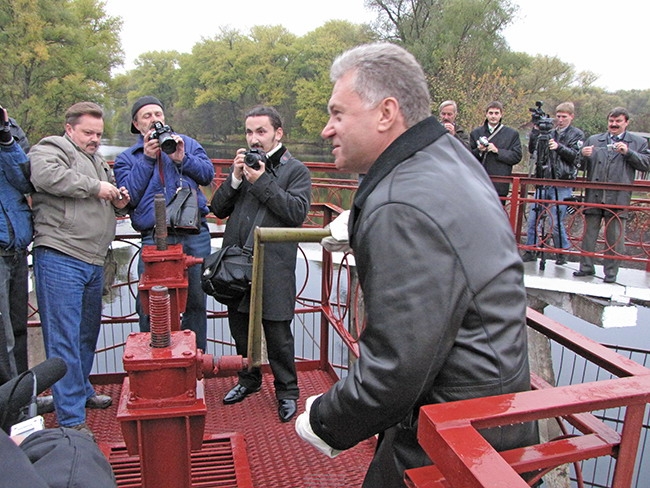 Возле шахтного водосброса по улице Береговой, где Стрижень впадает в Десну, собрались черниговские журналисты, строители, жители района. Александр Соколов, совместно с юной жительницей района в торжественной обстановке перерезал красную ленту, а затем собственноручно перекрыл туннельный затвор шахты.