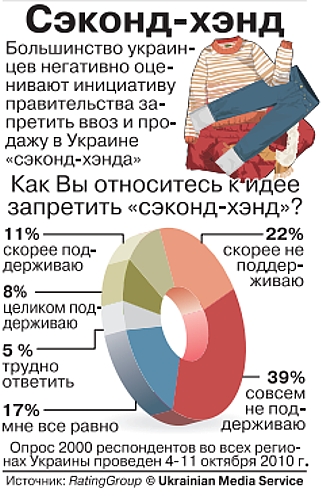 - Во всем мире говорят: «Мы не такие богатые, чтобы брать дешевые вещи», а тем более даром. Ведь неизвестно, какое у них происхождение, что, как и откуда взято. Только одна Полтавская таможня оформила 36 контейнеров «сэконд-хэнда». А на рынке почему-то появились дорогие сапоги, дорогая одежда различных производителей... - выразил непонимание Юрий Соловков. В целом он убежден, что во всем нужен государственный контроль. По мнению Юрия Соловкова, для очень бедных слоев населения нужно принимать государственные программы по «сэконд-хэнду». Но для этого нужны благотворительные организации, которые под госконтролем будут получать товар, приводить его в надлежащее санитарное состояние, проверять его на отсутствие инфекций и только после этого самостоятельно раздавать малоимущим людям.
