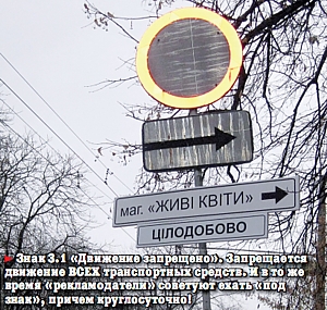 Похоже, черниговские рекламодатели очень хорошо научились «подгонять» рекламу под дорожные знаки. Правда, в комментариях к ПДД Украины таких «знаков», как на наших дорогах, мы не обнаружили. Похоже, таким образом нарушается Закон «О рекламе» и происходит уход от уплаты налогов. Но самое главное – усложняется дорожная обстановка в Чернигове, и, может быть, хоть и косвенно, но оказывается влияние на рост аварийности на дорогах города.