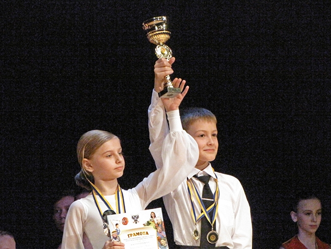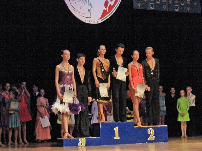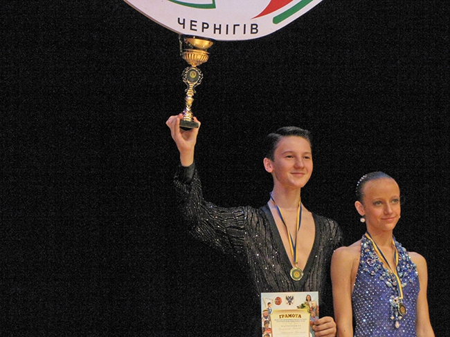 Категория ювеналы-2, стандарт и латина – Алексей Кущик и Карина Давиденко, клуб «Кармен» (Чернигов).