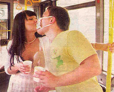 Игорь и Таня приехали в троллейбусный парк заранее. Украсили транспорт шариками, на окна наклеили свои черно-белые свадебные фото.