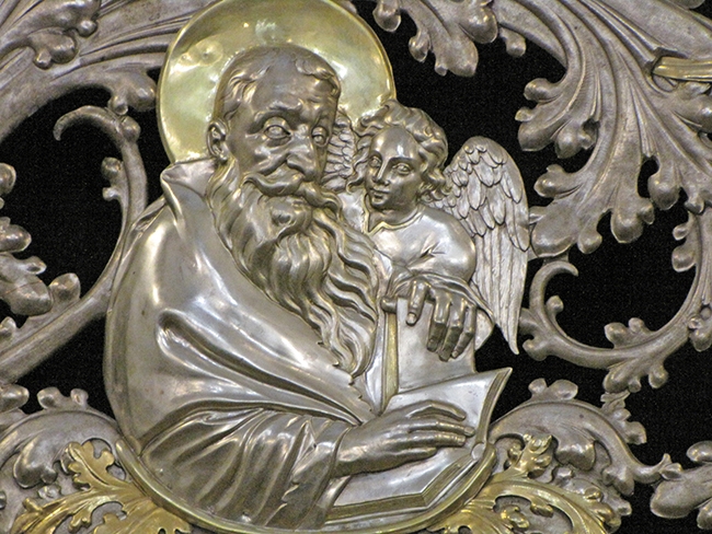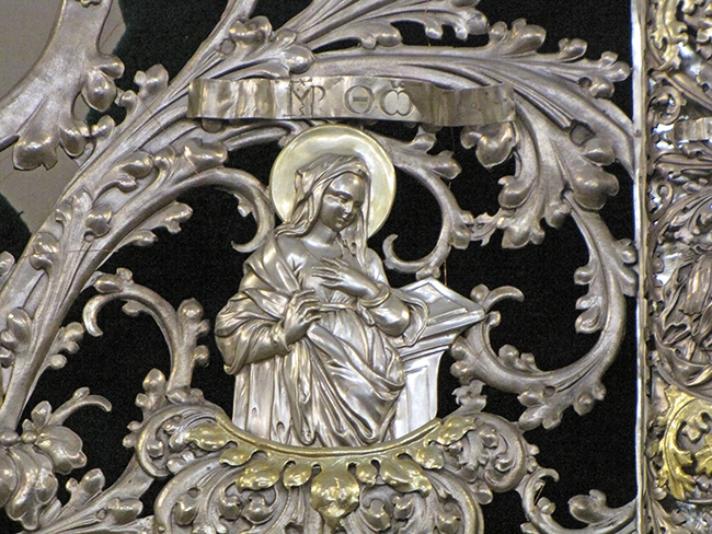 У верхній частині – сюжет «Благовіщення». Внизу – композиція «Євсеєвого дерева»: зображення пророка Єсея, царя Давида і на центральній вертикальній платівці – десяти біблійних царів – наочне обґрунтування пророцтва Єсея, що Марія та її син Ісус Христос походили з його роду.