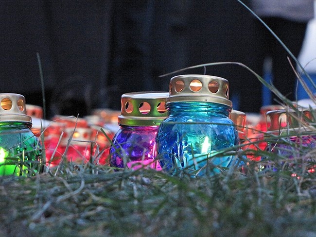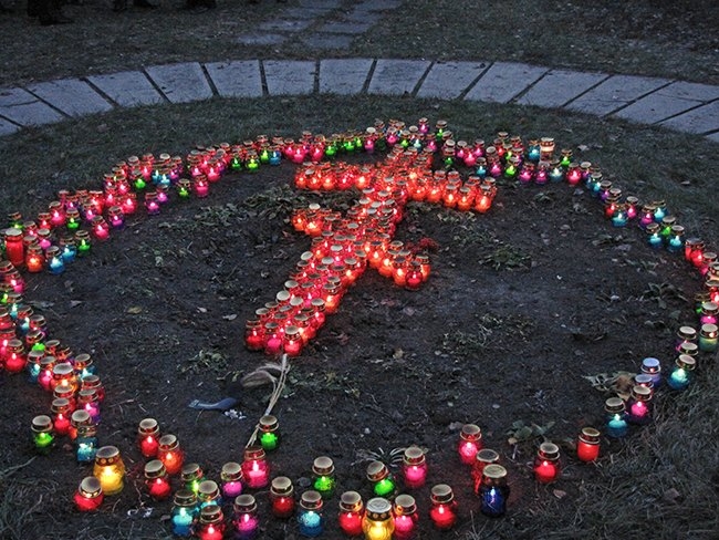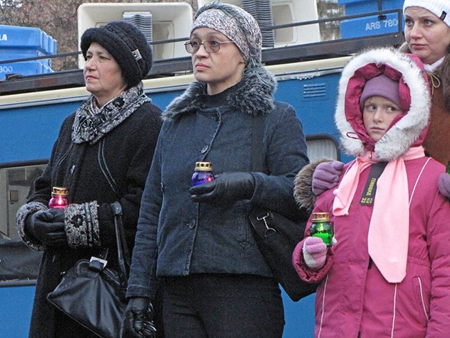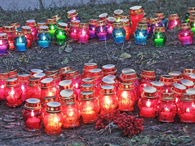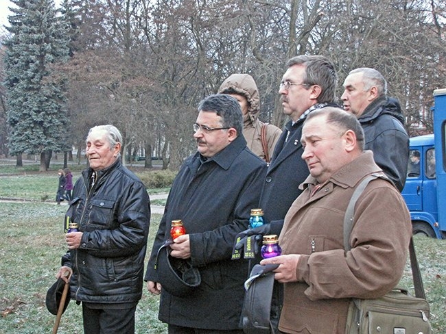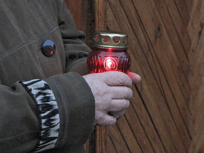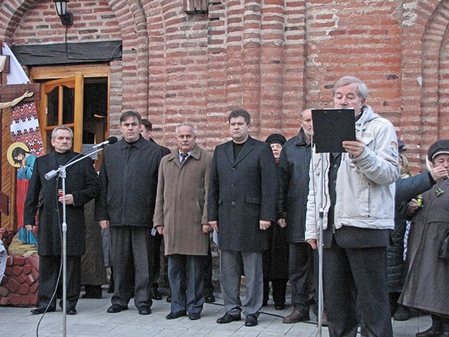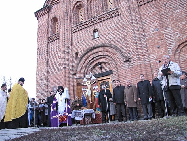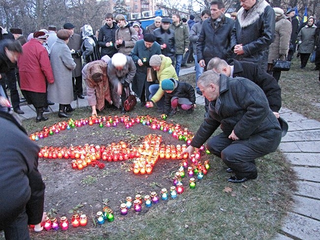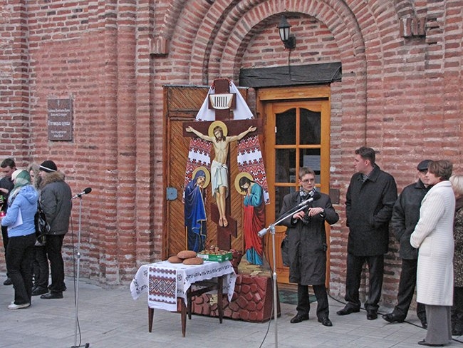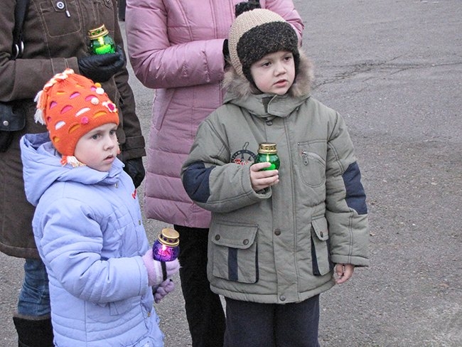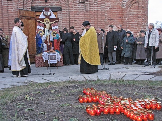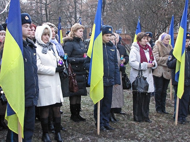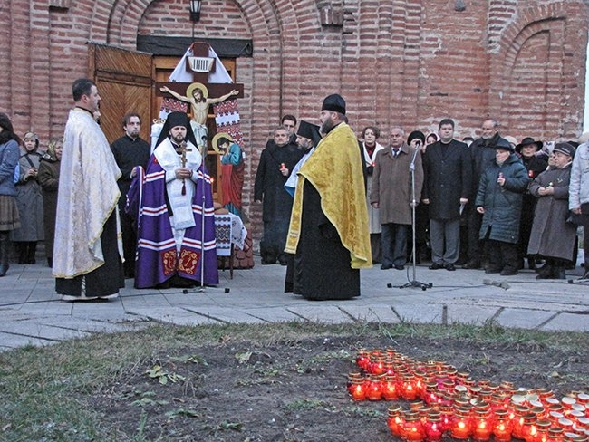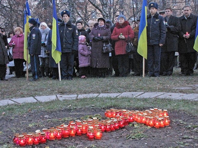 Черниговчане, собравшиеся возле Пятницкой церкви, зажгли свечи в память соотечественников, погибших голодной смертью.
