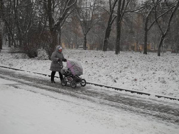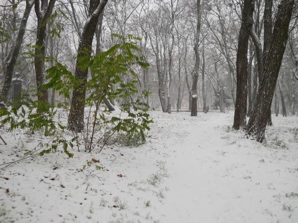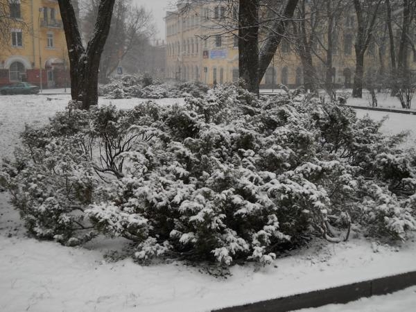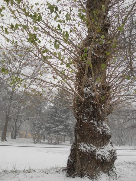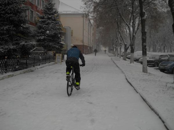 Явно не ждали его, все еще, зеленые листья деревьев, и такого, же цвета, травка. Да, и некоторые горожане оказались не готовы к такому подвоху от природы, по привычке выехав в город на велосипедах.
