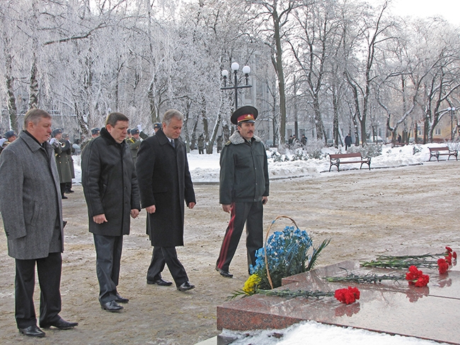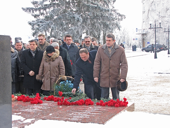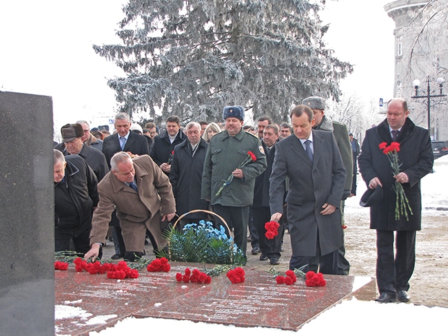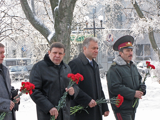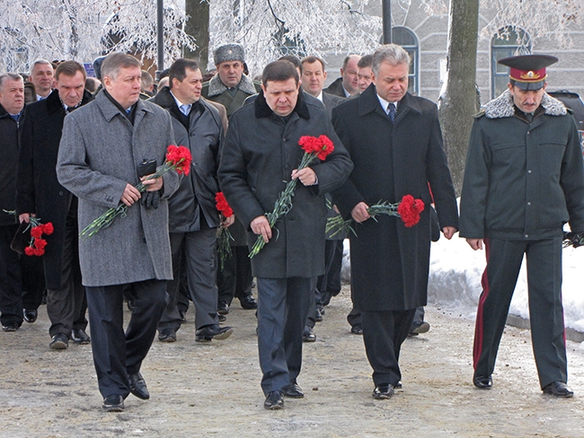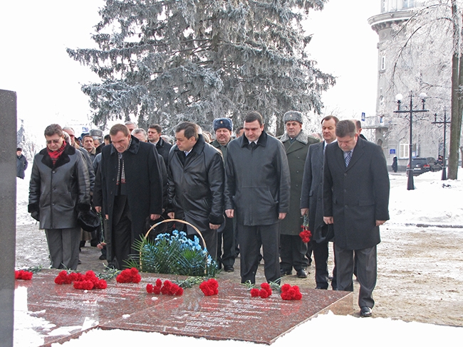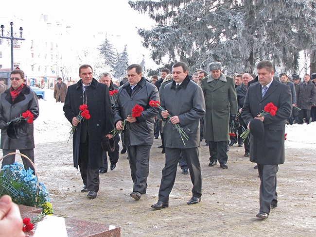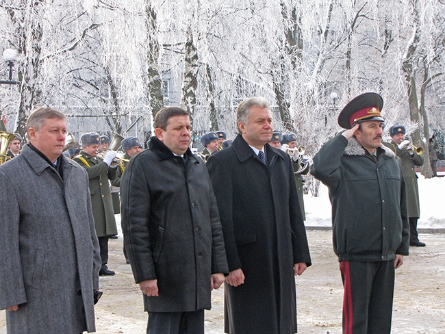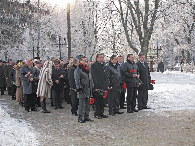По традиции, под залпы военного салюта, здесь состоялось возложение цветов к братской могиле при участии руководителей области и города, военных подразделений, предприятий и организаций, общественности города.