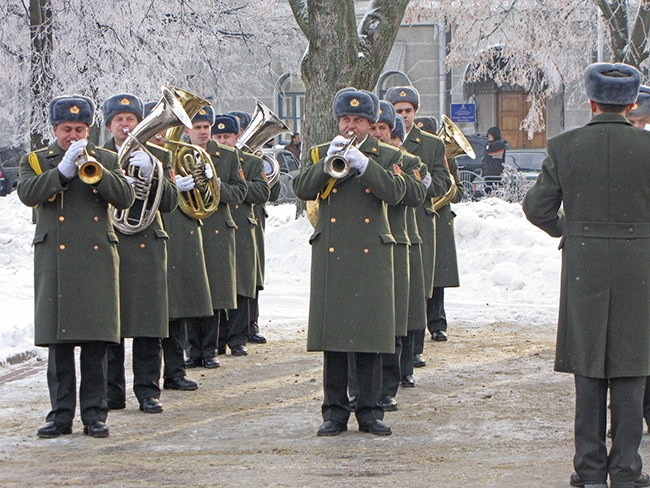 В этот морозный зимний день, с утра в сквере им. Попудренко собирались военные, лицеисты и представители различных общественных организаций.