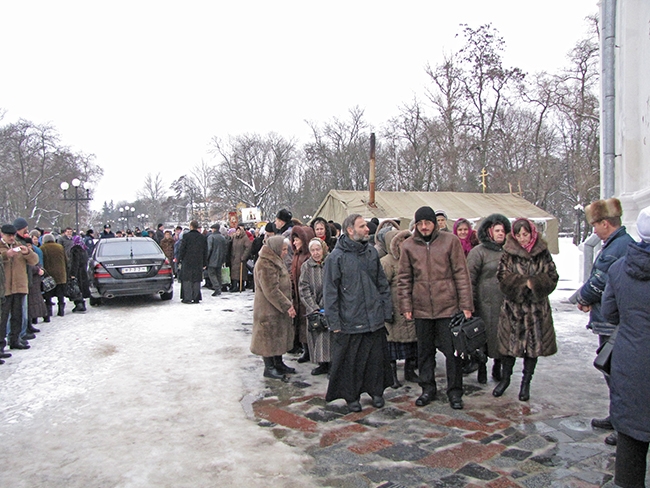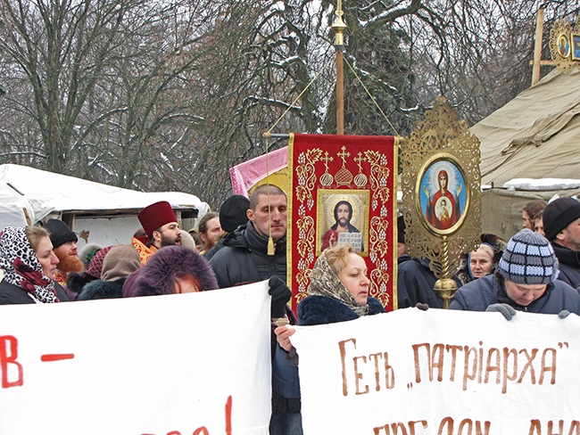 По прибытии Патриарх Филарет спокойно прошел мимо возмущенных пикетчиков, которые недовольными выкриками встречали высокого гостя. А, отслужив Божественную литургию, пообщался с представителями прессы, благословил казаков, которые выстроились возле храма и, пройдя возле строя крикунов и недоброжелателей, уехал.