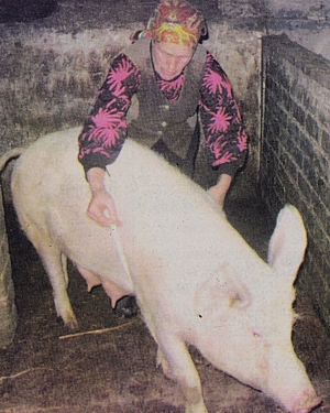 Велика біла Машка бігає по загінчику. По стойці «струнко» стояти не хоче. Реве, не дається. У загінчик залазить Валентина Федорівна. Жінки ганяють за свинею. А вона від них. П'ять хвилин — тварина здалася.