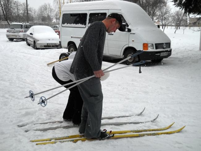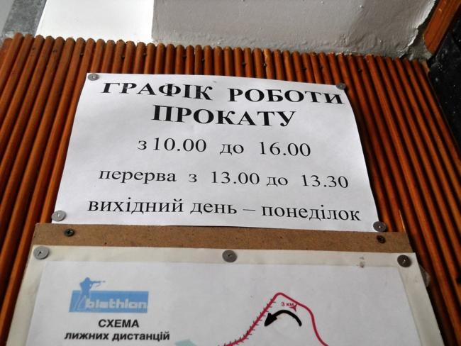 По поводу цены. 15 грн в час – деревянные лыжи с ботинками, 25 – пластиковые. С одной стороны – вновь, спасибо и за это. С другой – для семьи из 4-х человек пара часов прогулки обойдется в две сотни. При нашей минимальной зарплате в восемь сотен – это фактор, не способствующий регулярным походам на лыжню.