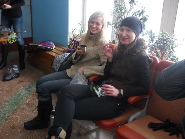 По словам девушки-администратора, к 13 часам базу посетило около ста человек. Походил, посмотрел, пообщался с отдыхающими. Довольны все. Даже те, кому лыжи достались старые деревянные, и чуть сыроватые ботинки.