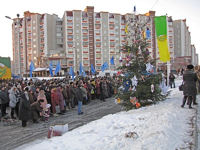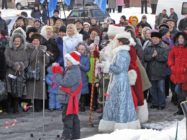 Поздравить жителей микрорайона с этим замечательным событием пришли также Дед мороз со Снегурочкой и совсем молодой Новый год!