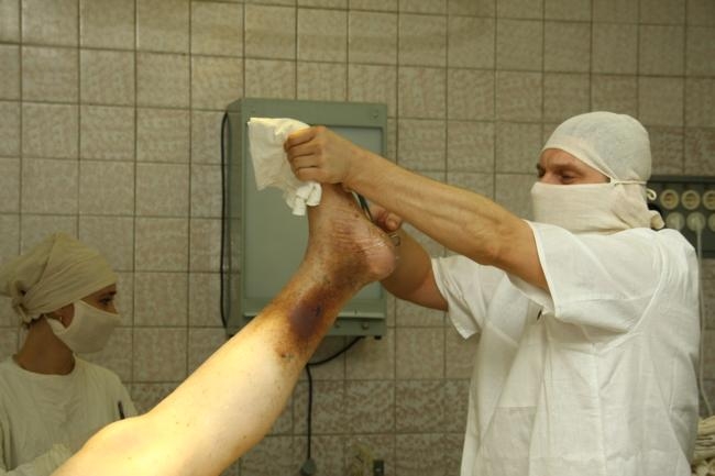 Пацієнтка – літня жінка, під дією спинномозкової анестезії весь час вона була при тямі. Після операції венозний тиск у неї нормалізувався, внаслідок чого тканини ноги перестануть відмирати. Медики кажуть, що пацієнтка стане на ноги через кілька діб, бо має літній вік. Молодших людей оперуватимуть вранці, щоб до вечора вони вже ходили.
