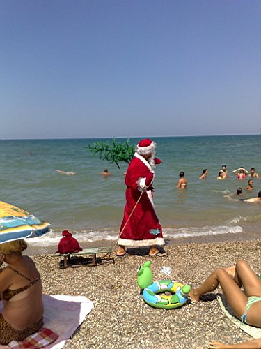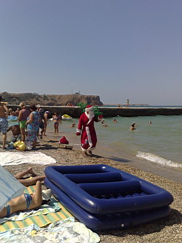Вот такой Новый год, в виде Деда Мороза, пришел с нами на пляж), когда мы отдыхали в Крыму в пансионате Лесник.