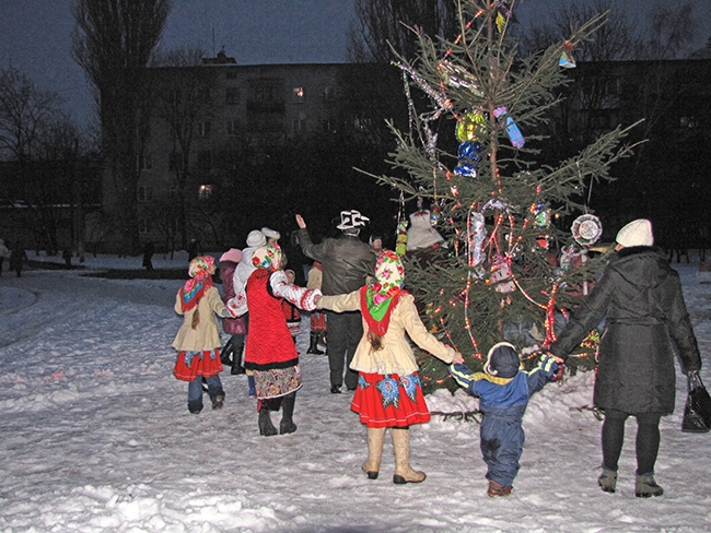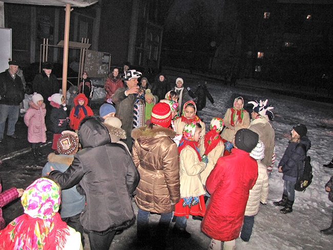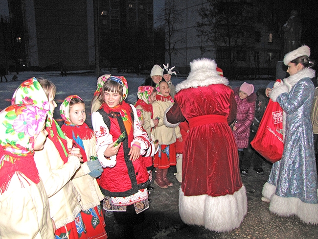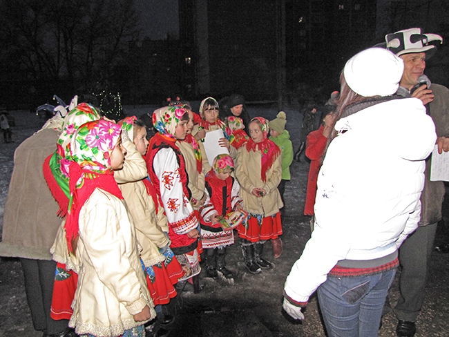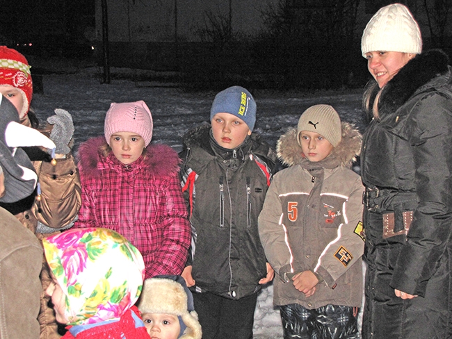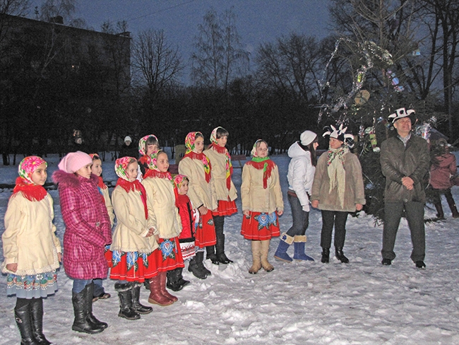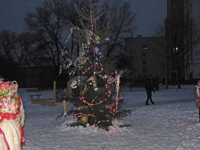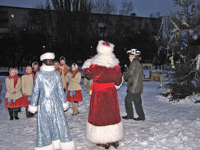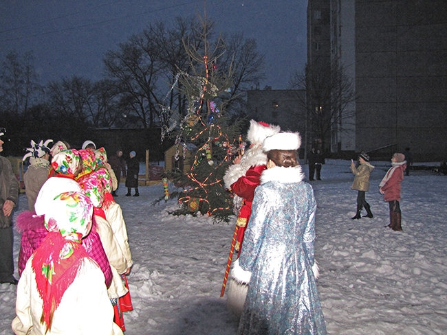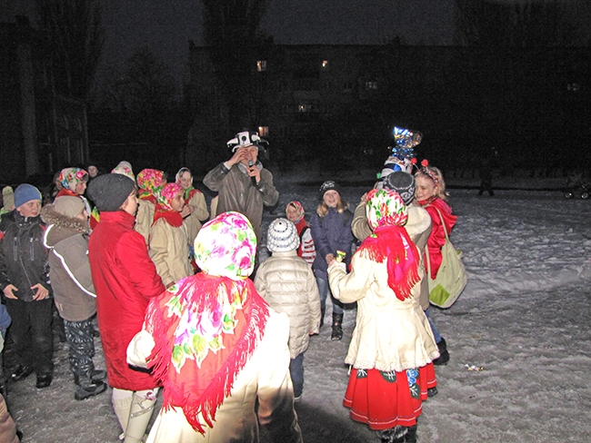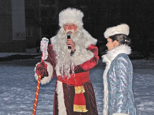 Уже после полудня на площади возле Дворца культуры стала собираться детвора. Они с задорными криками бегали вокруг нарядной елки, ожидая торжественное мероприятие. Ближе к вечеру, когда стемнело, на площади собрались и взрослые жители этого района.