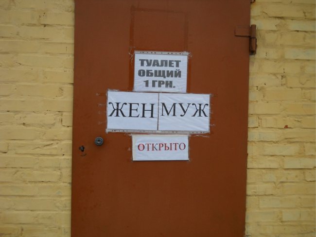 Случайно заглянул на территорию народно-торгового комплекса магазинов на ул. Щорса. Это между Кругом и Шерстянкой. И тут есть, на что направить объектив. Туалетное ноу-хау по-черниговски – туалет общий.