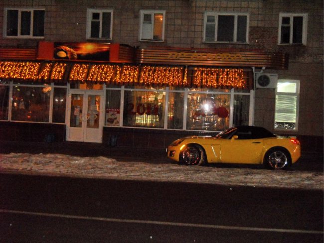 Шикарный желтый кабриолет, наверняка, принадлежит настоящему деду Морозу. А что? Приехал на разведку. Ну, надо, же знать, как мы себя ведем... Слушаем, ли маму с папой. Хорошо, ли, кушаем?!