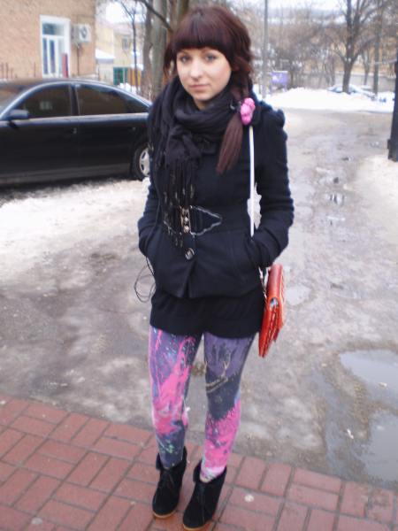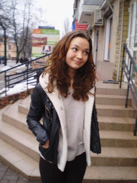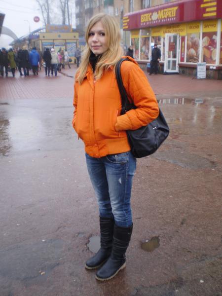 Студентка Киевского университета культуры и искусств. Считает себя стильной. Придерживается стиля кежуал. Вещи в основном покупает в Чернигове, на цены не смотрит, главное, чтобы хорошо сидело. В гардеробе Жени всегда должны присутствовать какие-то шарфики, сережки и заколки.