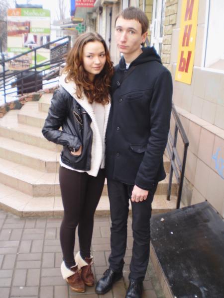 Необычная пара, что встретилась мне на улице. Ребята не считают себя стильными, стиль выдумывают сами себе, одеваются так как нравиться и могут надеть всё. Лера предпочитает что-то красивое и в основном покупает одежду в магазине «Zara» в Киеве. Стас отдает предпочтение более удобной одежде, иногда покупает вещи в секонд-хендах .