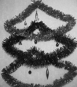 Еще одно решение для «экоответственных» жителей планеты – картонная ель. Всё, что для этого нужно – это картон. Чем большую вы хотите сделать елку, тем больше картона вам понадобится. Берете картон, делаете из него такую елку, как подсказывает вам фантазия, и наклеиваете∕прибиваете∕прикручиваете на стену. Затем можно покрасить ее в любой цвет и украсить на свое усмотрение. Плюс ко всему такая елка станет находкой для тех, у кого в доме мало места. По такому же принципу можно соорудить на стене елку из гирлянд или дождика. Тем более что вариант – пожалуй, один из самых экономных и в то же время веселеньких.