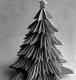 Еще один способ сделать оригинальную новогоднюю елочку – оригами (конструирование из листов бумаги). К тому же оригами положительно влияет на развитие детей. У ребят совершенствуется мелкая моторика рук, движения пальцев становятся более точными, вырабатываются аккуратность, внимание. Занятие это хоть и несложное, но трудоемкое, занимающее много времени. Так что вот вам и способ занять ребенка в то время, когда вы будете заняты приготовлением к праздникам! Инструкцию по изготовлению такой елки можно найти в любом руководстве по оригами или в Интернете.