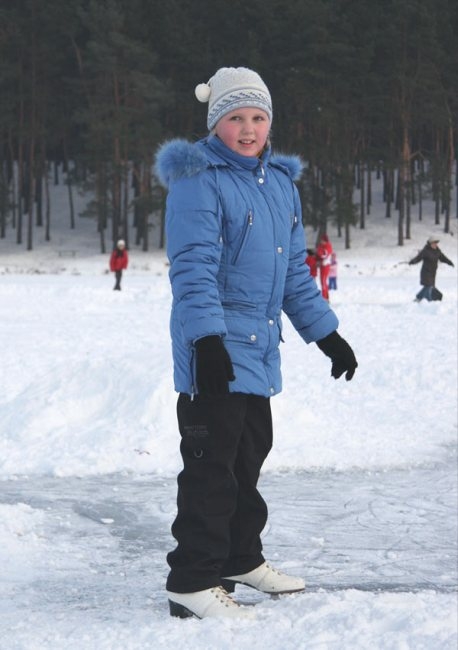 Открыл свой сезон и неофициальный каток на Стрижне. Энтузиасты приходят с самого утра. Алина, ученица 22-й школы пришла на каток с папой.