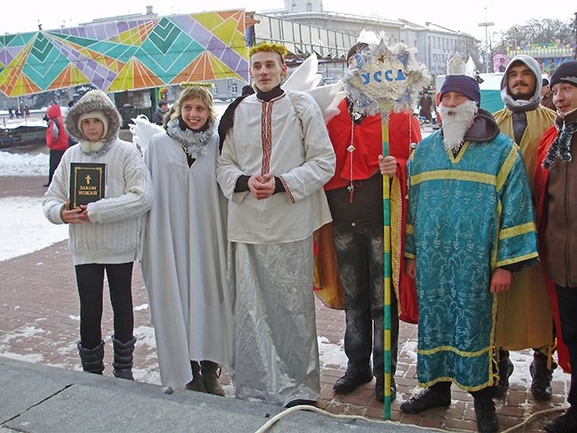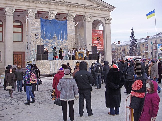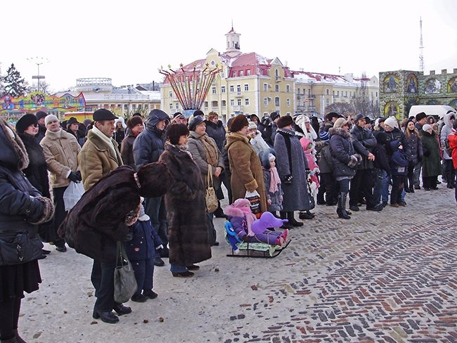 Горожане, пришедшие в этот морозный день на Красную площадь, стали свидетелями торжественного открытия первого городского Рождественского фестиваля «Черниговская коляда».