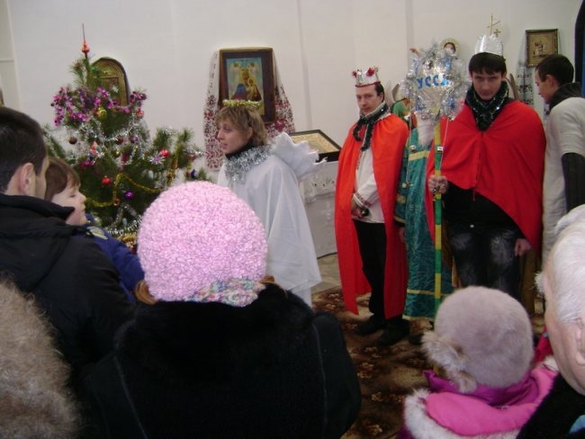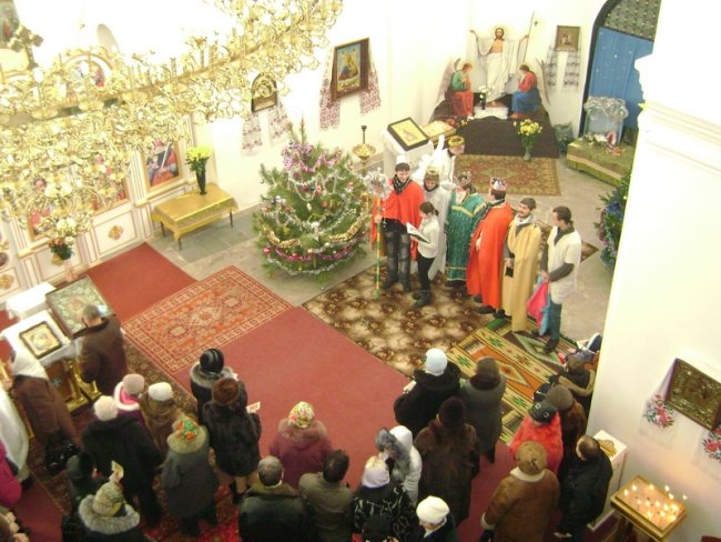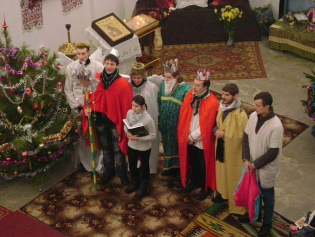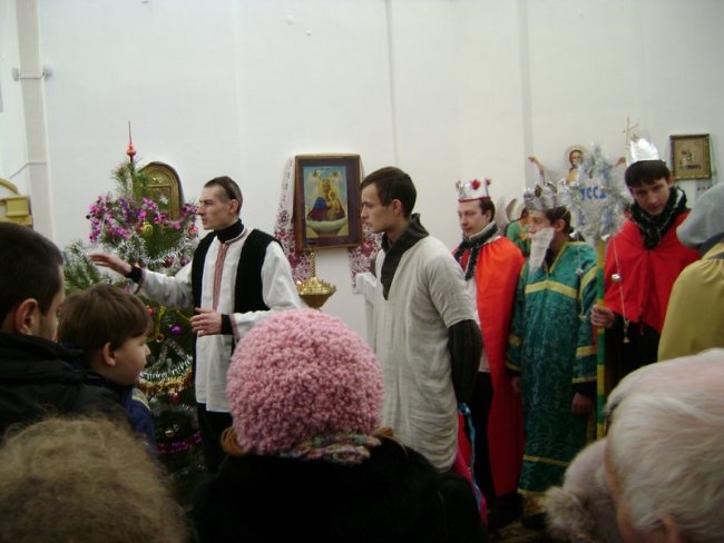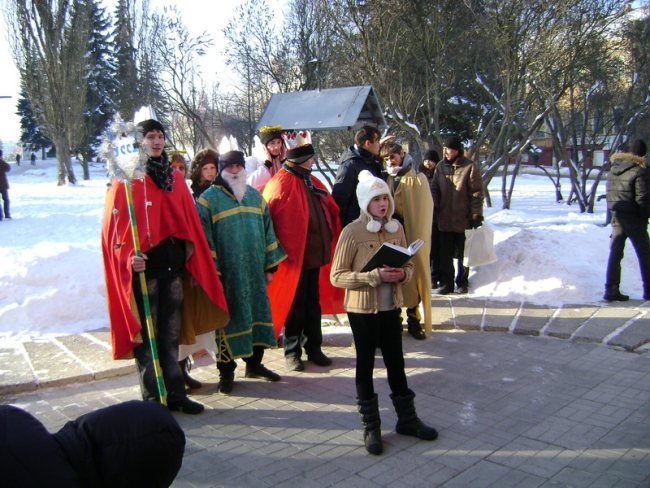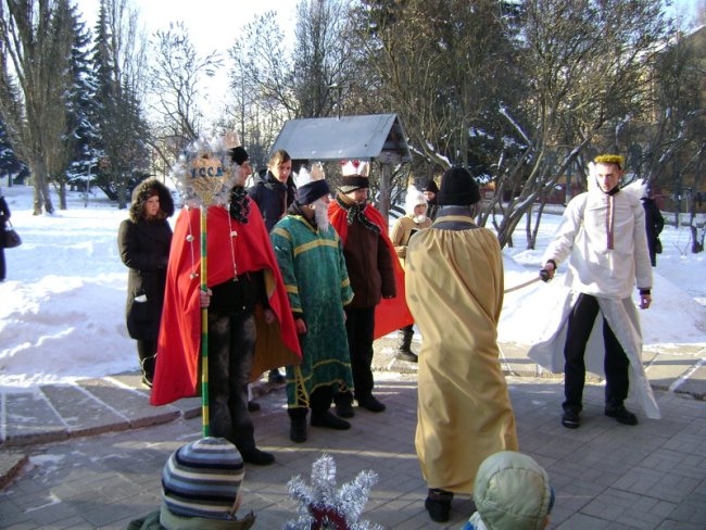 Молоді націоналісти провели Різдвяний Вертеп в Єкатерининській та П’ятницькій церквах УПЦ Київського патріархату, та виступили на сцені, встановленій на Красній площі.
