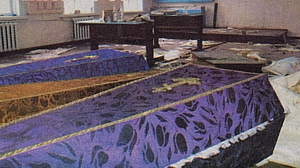 Оглядаю приміщення школи в селі Кнутах. Крізь розбиті шибки видно портрет Сухомлинського над шкільною дошкою. На підлозі розкидані папери. Обірвана географічна карта. А під нею... три труни. Моторошна картинка — гроби і пляшки на тлі парт та шкільної дошки.