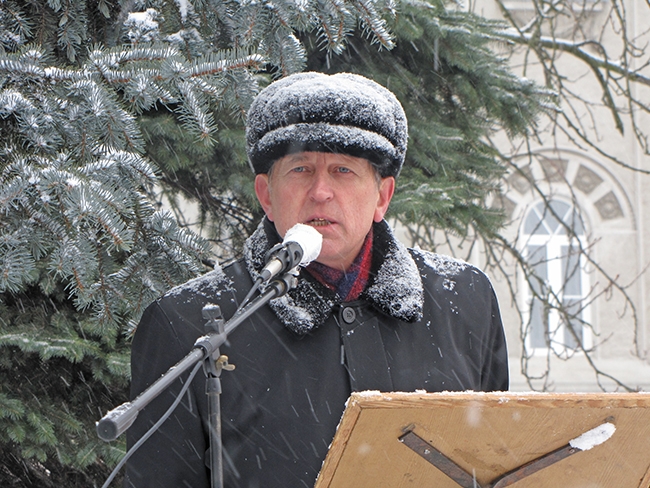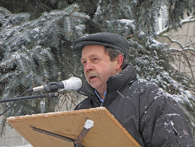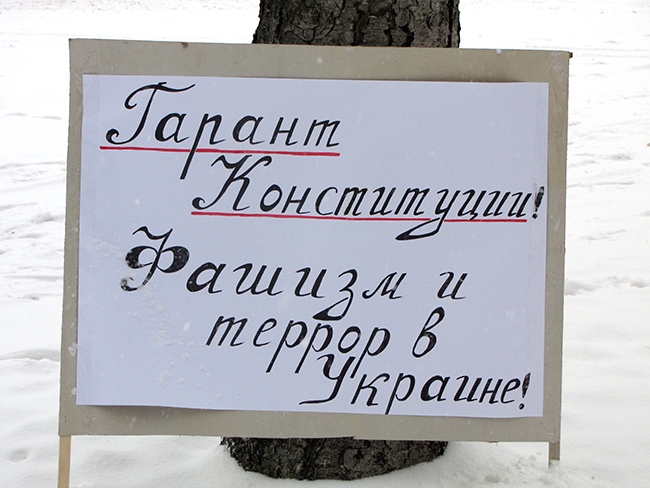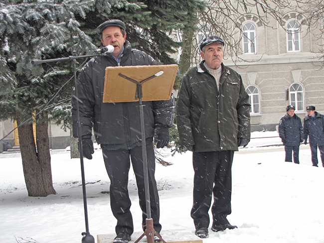 Глава Черниговской областной ячейки Антифашистского комитета Украины Николай Скоробагатько зачитал текст обращения к власти участников акции протеста. В нем изложены требования к Президенту В. Януковичу, к центральной и местной исполнительной власти: