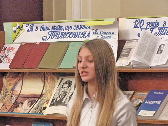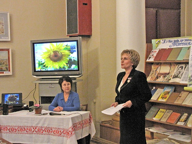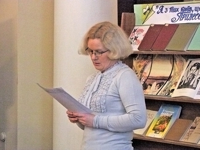 Модератор заходу бібліотекар відділу краєзнавства Вікторія Солонікова ознайомила присутніх з книжково-інформаційною виставкою з літературної спадщини П. Г. Тичини та наголосила, що читання присвячуються саме чернігівському періоду життя та творчості нашого видатного земляка.